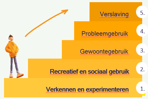 Jongeren zijn niet zómaar verslaafd. Tegelijk is de fase van puberteit extra gevoelig voor het ontwikkelen van verslavend gebruik, ook op latere leeftijd. Kennis van de trap van verslaving en van middelengebruik helpt om de tijd van signaal naar actie verkort. Grenzen en kaders helpen jongeren om zelfbeheersing te tonen en gezonde keuzes te maken.